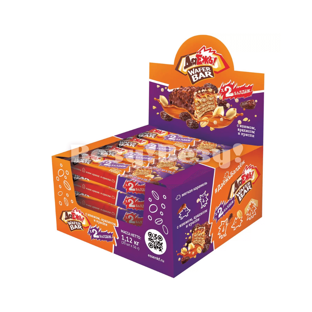 Батончик Даёжь! С карамелью, изюмом, арахисом и криси 56 гр