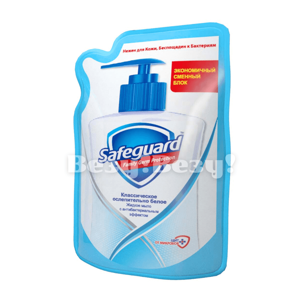 Антибактериальное мыло Safeguard "Классическое Ослепительно Белое" в удобной жидкой форме защищает от болезнетворных бактерий даже после смывания и подходит для ежедневного использования.