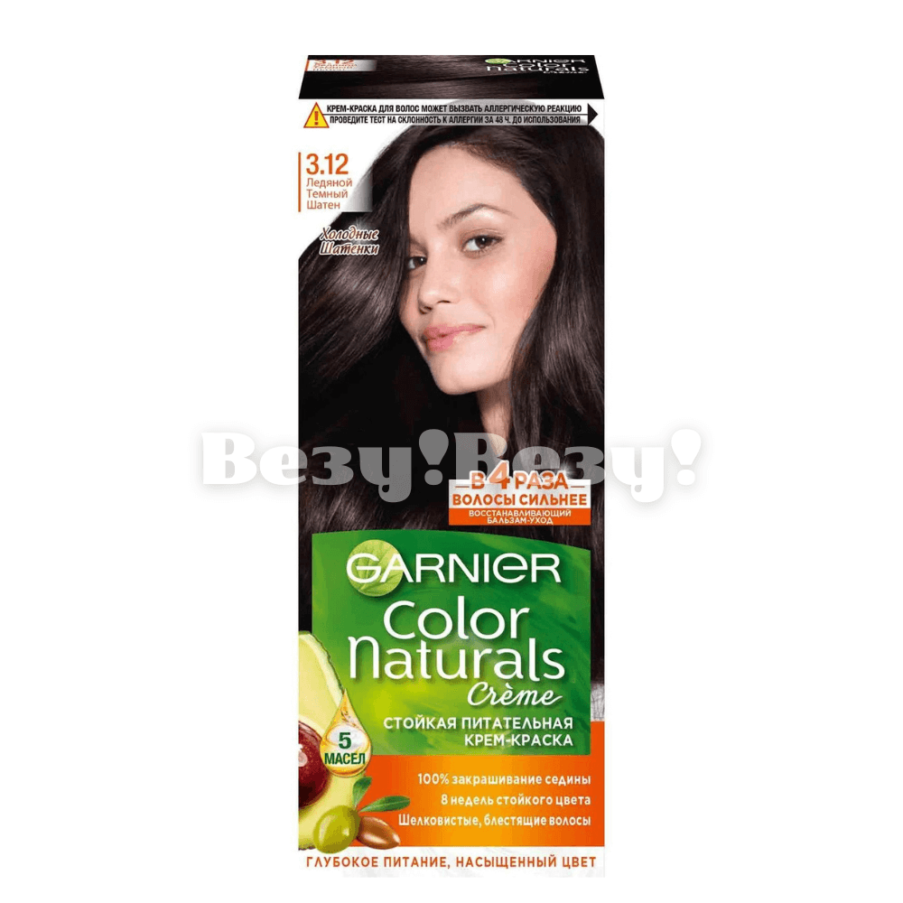 Крем-краска Garnier Color Naturals Ледяной Темный Шатен с маслами оливы, авокадо, ши, клюквы и арганы окрашивает волосы в интенсивный темно-коричневый оттенок, покрывает 100% седины и обеспечивает питательный уход. Благодаря маслам красящие пигменты проникают в саму сердцевину волоса, поэтому цвет долго не вымывается и остается стойким до 8 недель. Одновременно они питают, увлажняют и разглаживают локоны, придавая им мягкость и шелковистость. Ухаживающий бальзам с 5 маслами закрепляет результат окрашивания и восстанавливает волосы, делая их в 4 раза более сильными. Ваши локоны мягкие на ощупь, они выглядят гладкими и сияющими. Оттенок 3.12 «Ледяной Темный Шатен» Garnier Color Naturals – холодный темно-каштановый оттенок.