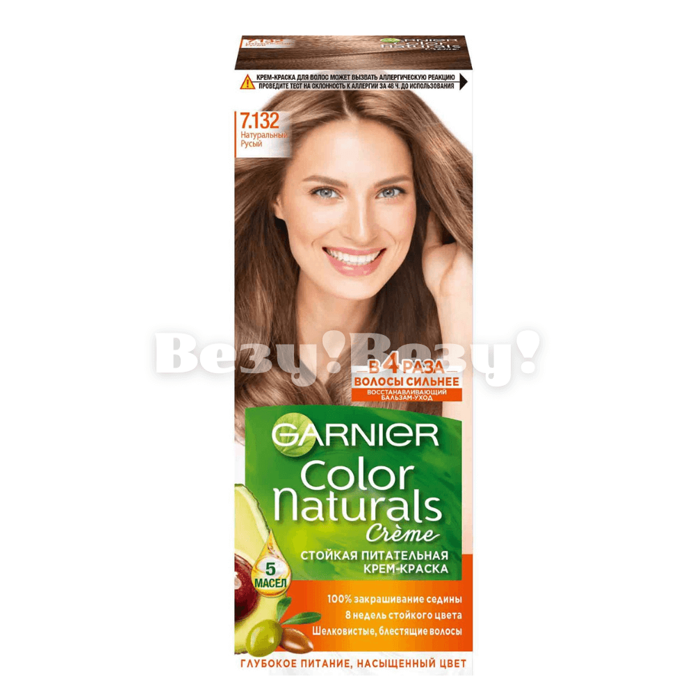 Стойкая крем-краска с маслами для еще более интенсивного стойкого цвета до 8 недель и покрытия 100% седины. Обеспечивает волосам насыщенный оттенок и одновременно ухаживает за ними. Натуральные масла оливы, авокадо, арганы, клюквы и ши питают, смягчают, разглаживают, защищают волосы от повреждений и потускнения цвета. Бальзам-уход с ароматом фруктов обеспечивает локонам дополнительное питание и превращает процедуру окрашивания в истинное удовольствие. Оттенок 7.132 «Натуральный русый» от Garnier Color Naturals – выразительный русый цвет с мягким золотистым отливом.