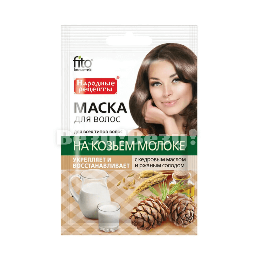 НАРОДНЫЕ РЕЦЕПТЫ Маска для волос 30 мл.На Козьем молоке с кедровым маслом Укрепляет и восстанавливает