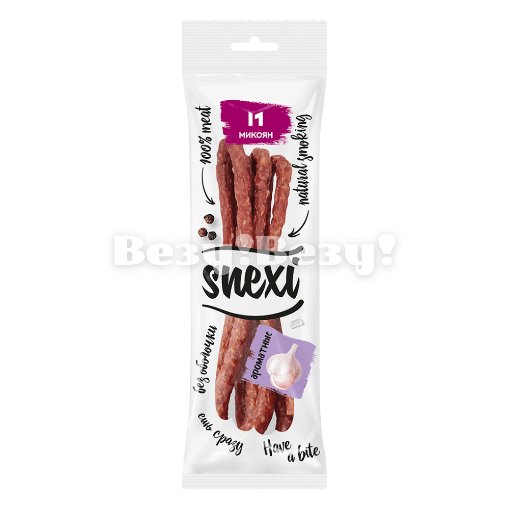 Колбаски варено-копченые SNEXI Ароматные Эти колбаски – настоящий выбор для тех, кто ищет острые вкусовые ощущения. Добавление острого перца придает особую пикантность, а уникальная форма продукта непременно привлечет внимание.