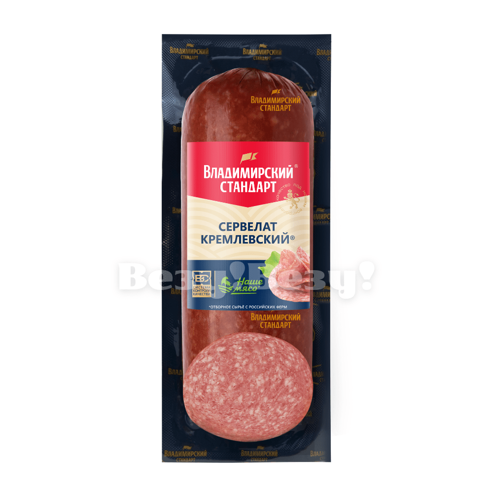 Рецепт сервелата Кремлёвский имеет долгую историю и известен с советских времен. Колбаса представлена мелкозернистой структурой, изготовлена из отборного мяса с добавлением изысканных специй и натурального копчения на буковых опилках