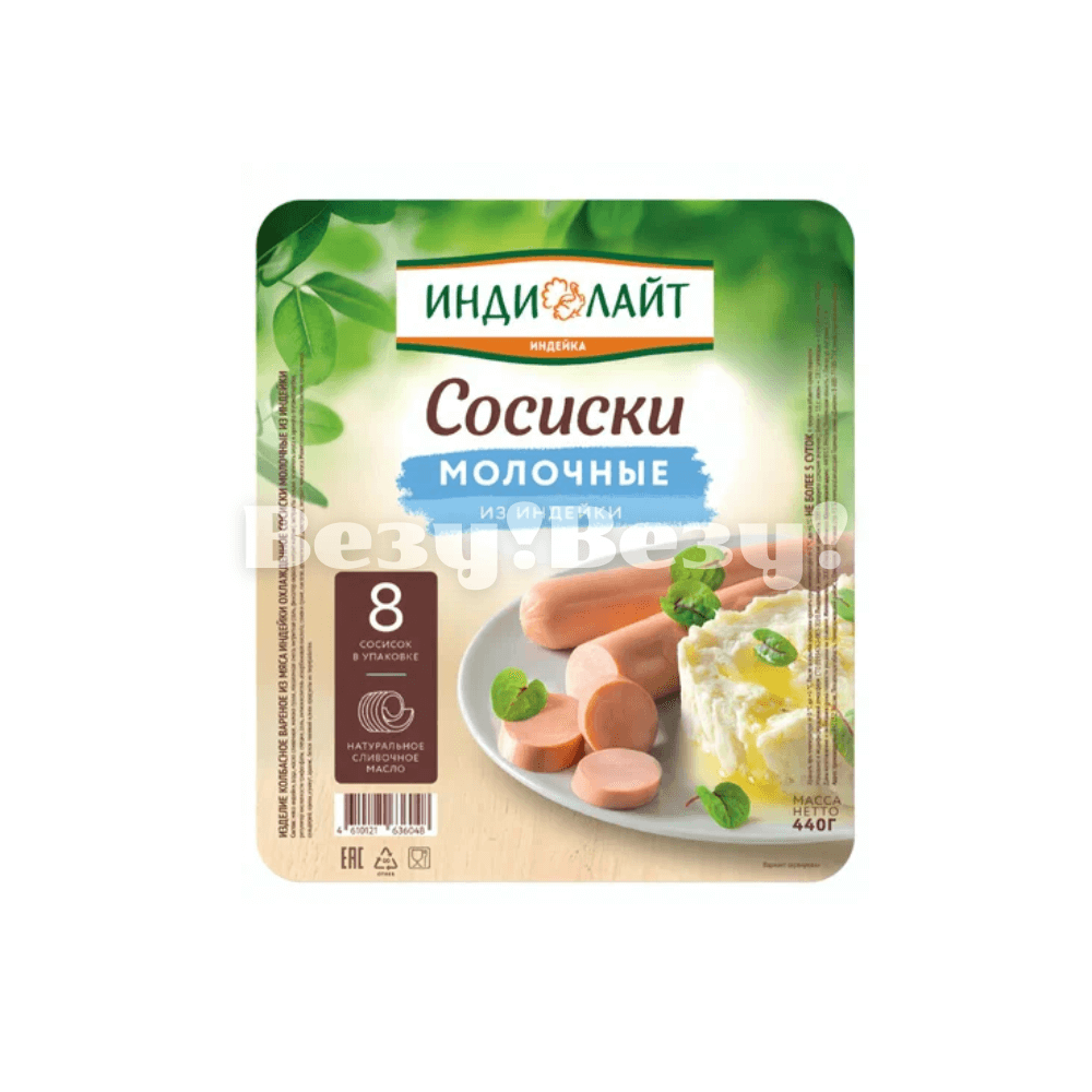 Сосиски молочные из индейки Индилайт 440 гр