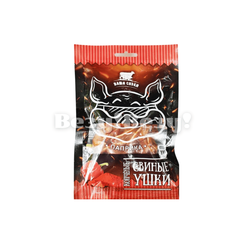Ушки свиные "Наши снеки" варёно-копчёные с паприкой 90гр