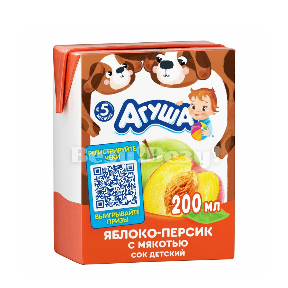 Сок детский Агуша 200мл персик, яблоко