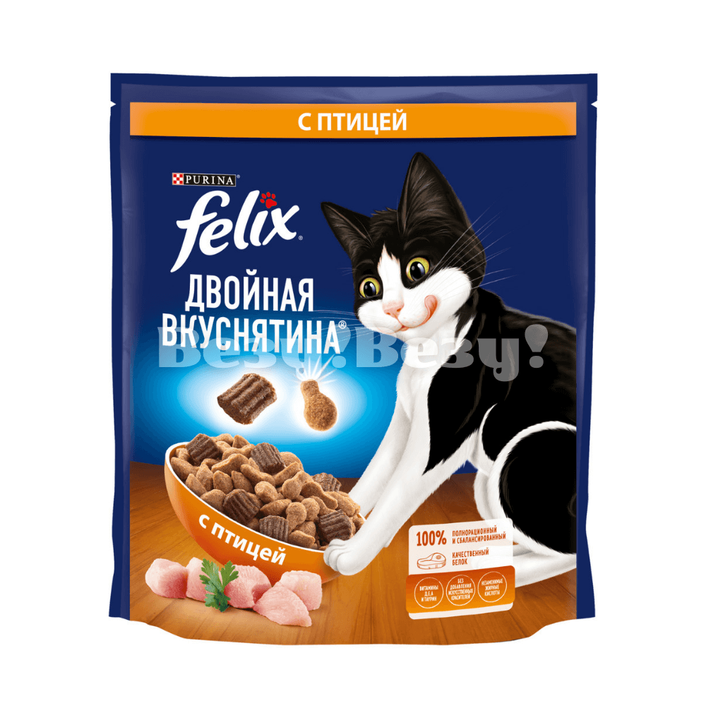 Felix Двойная Вкуснятина - первый сухой корм, созданный под брендом Felix для находчивого кота, который знает толк во вкусной еде.
