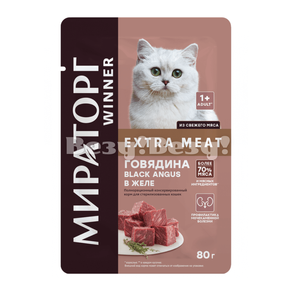 Корм Extra Meat для стерилизованных кошек "Говядина Black Angus в желе" 80 гр