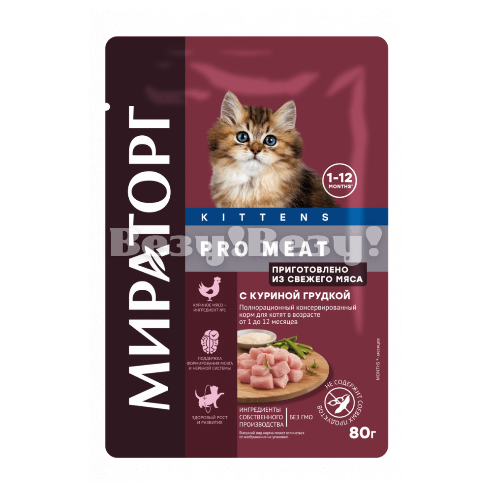 Корм с куриной грудкой для котят от 1 до 12 месяцев 80 гр