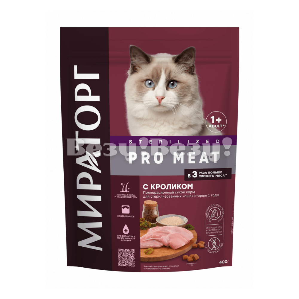 Полнорационный сухой корм c кроликом для стерилизованных кошек старше 1 года 400 гр